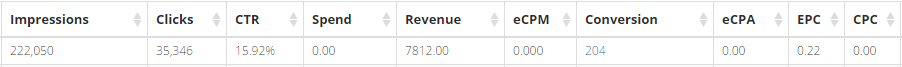 Three things jump out right away: CTR is about 16%, spend is zero, and the best improvement, 204 conversions.