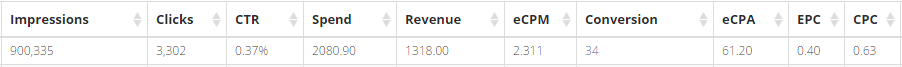 They put an exit splash, similar to the one above, on all of their landing pages. When a visitor goes to leave the page an exit splash gives directs them to other landing pages, angles, and/or offers. Take a look at some numbers from a typical display campaign.