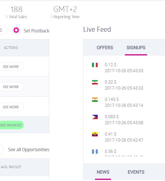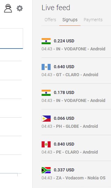 虽然live signup不能完全对应都single offer,但还是有些能够根据geo和payout判断到时哪一个具体的offer,这样就等于自己统计到了实时的转化动态。