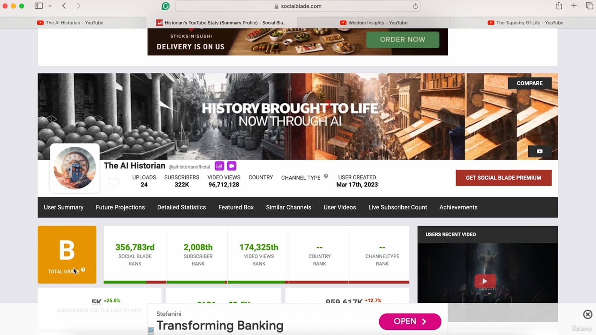 让我们从 “AI Historian”(AI 历史学家)频道开始说起。这是一个专门用 AI 制作历史故事的视频频道,目前拥有超过32.2万订阅者,但一共才发布了24个视频!仅仅用24个视频就吸引了如此多的订阅者,可以说成绩非常惊人。这些视频内容大多是围绕二战期间的真实故事,通过AI生成脚本和旁白,再配上一些动态图片,简单却吸引人。例如,他们的一部短视频甚至获得了1500万次播放量!这说明,只要选对了主题,即使是低成本的制作方式,也能创造巨大的影响力。