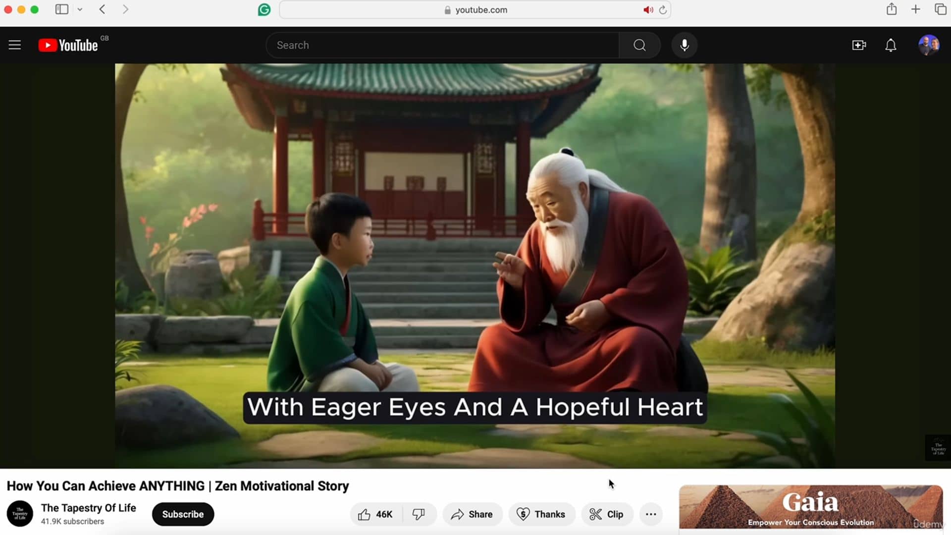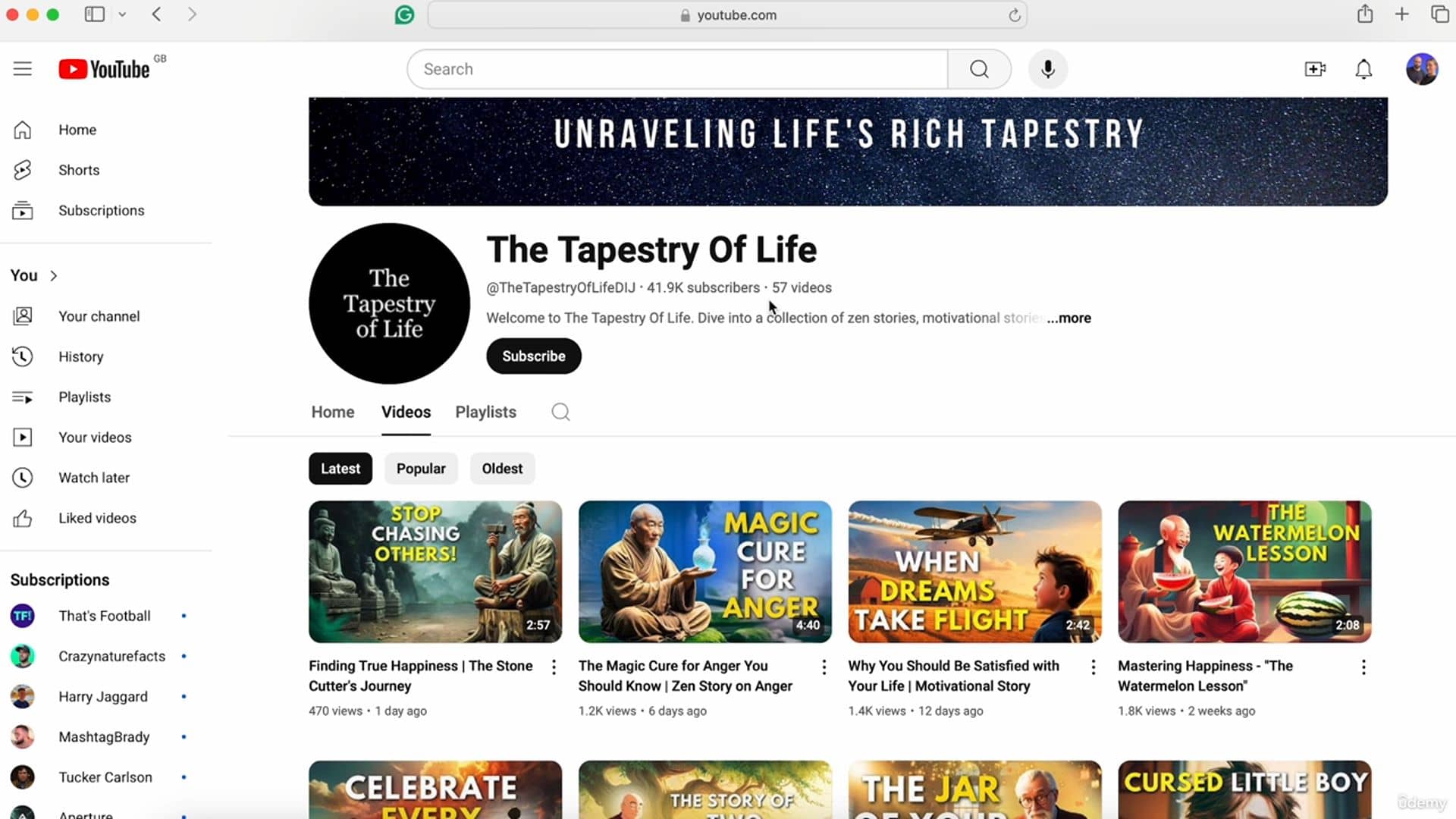 最后,让我们聊聊 “Tapestry of Life”(生命织锦)频道。他们目前的订阅者约为4.2万,总共发布了57个视频,其中内容平均时长仅为3分钟左右。最受欢迎的视频之一是一个关于 Zen 故事的短片,这部视频播放量高达15.3万!从这些视频可以看出,它们主要依赖于 AI 生成的脚本、静态图片,以及简洁的叙述。观众喜欢这样的内容,因为故事感强,观看时并不需要太多注意力,但却能从中学到一些人生道理。
