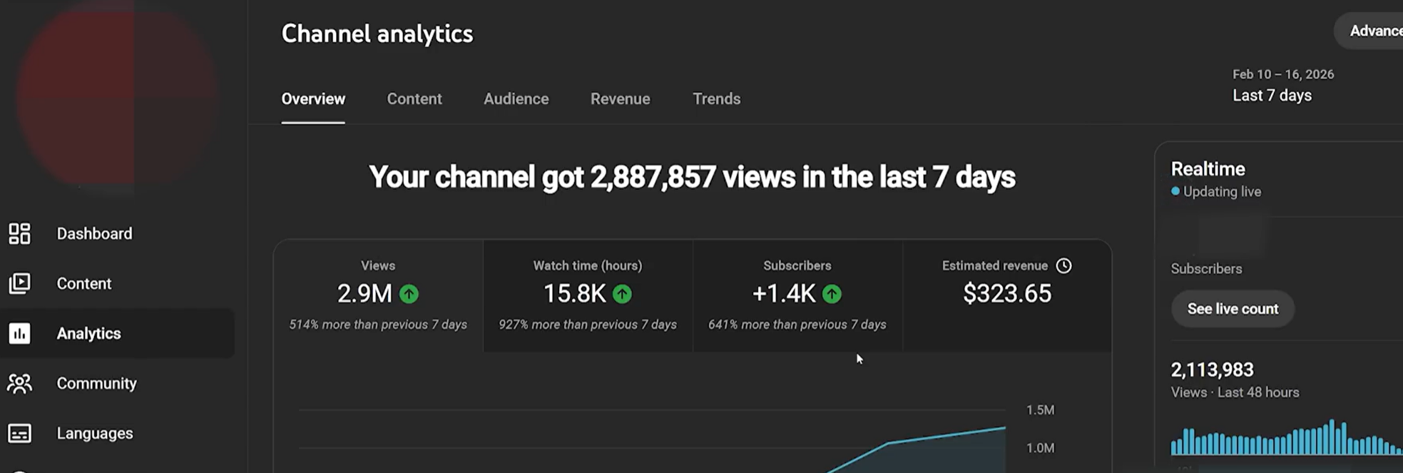 前几天我给自己定了个挑战,把一个停更很久的账号做起来。只用了七天,我就拿到了三百万左右的播放。这个内容赛道,你们绝大多数人应该都没想过要做。很多人觉得这种内容根本不能变现,我频道后台就是最好的证明,只传了两条视频我已经赚了三百多美元。更夸张的是,每条视频我只花了二十分钟左右制作。不管是手机、笔记本还是台式机,你在哪都能做这类视频。很多人看不上这种内容,觉得YouTube不会给这类内容开收益。只要你跟着我后面说的步骤来,完全可以安全做内容,还能顺利拿到变现资格。