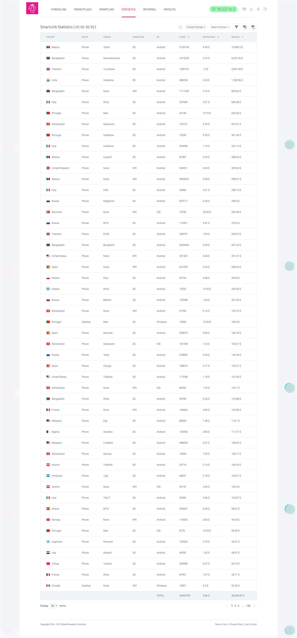 TOMMY给过我他自己跑的一个统计,10天跑了18000多美金,主要就是smartlink