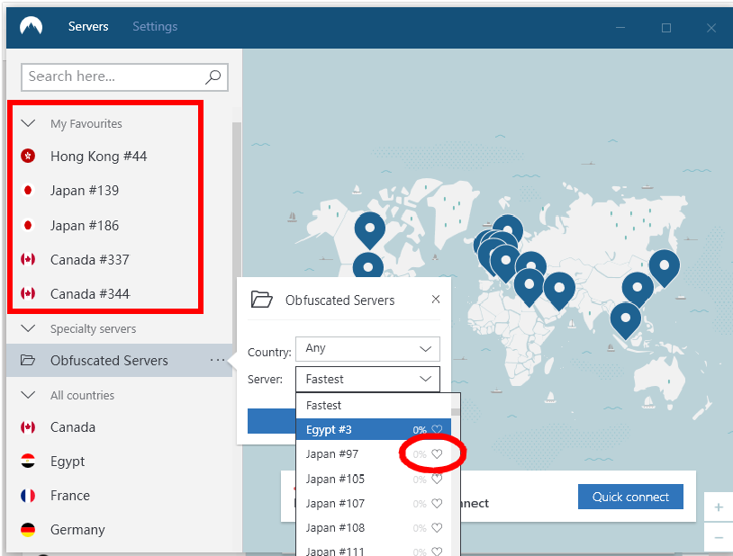 United States # 2440-2451, 3057-3058, 3167-3170, 3279-3280, 3282-3283, 3286.If the Obfuscated servers are not working either, disable the feature and try connecting to standard NordVPN servers: