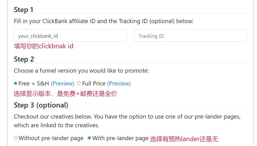 step 1,第一步填写你的clickbank id账号,就是登录账号。