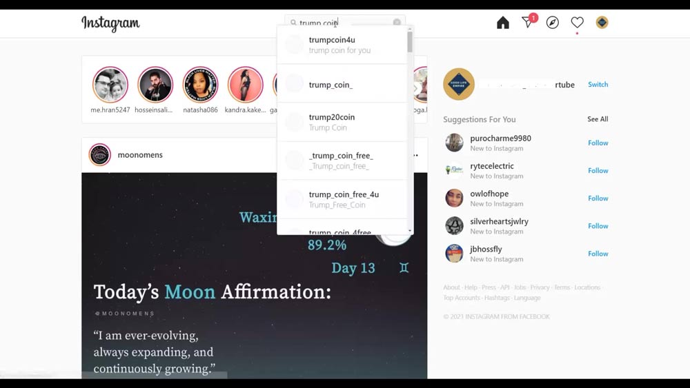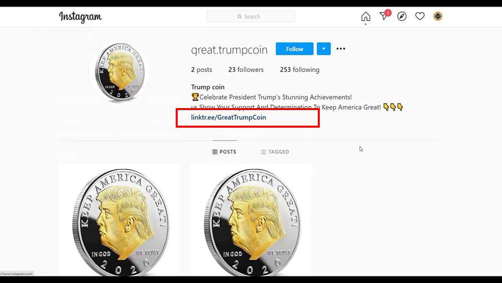 登录instagram账号,搜索 trump coin,可以不少账号在推广这个产品,你可以研究看看他们怎么做的,bio怎么写的。