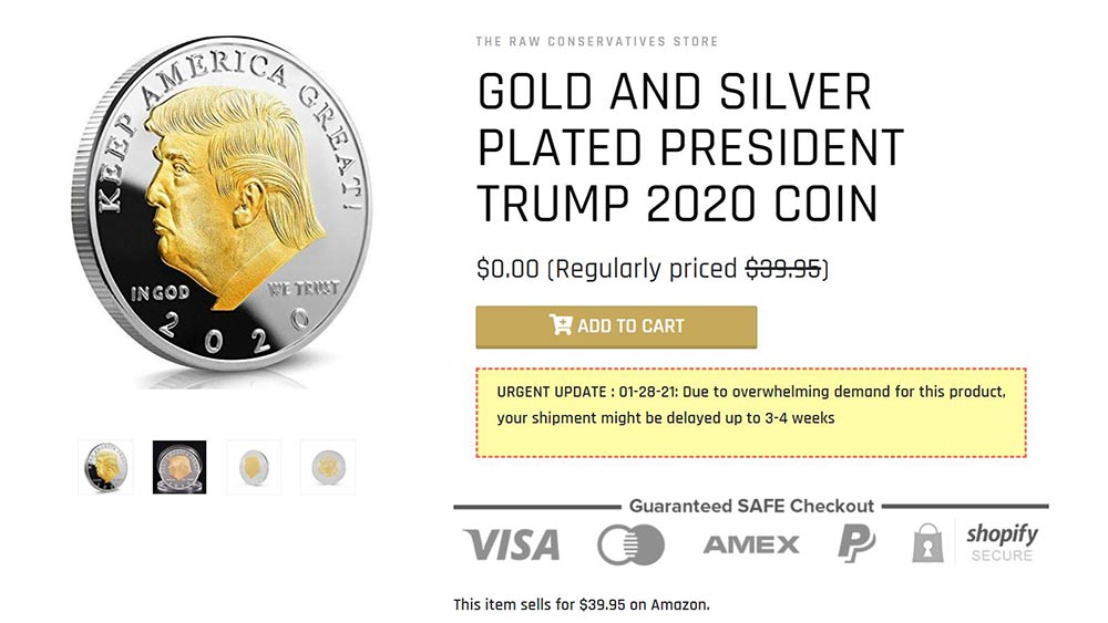 大家都知道我一直在做clickbank产品的推广,所以比较留意这个平台,其中就有一个产品 Gold Plated Trump 2020 Coin (特朗普镀金镀银硬币)