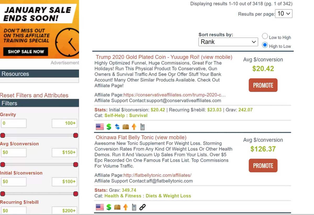 1、如果你己经有clickbank账号,那么登录后,点击最上面的Markeplace,搜索Trump 2020 Gold,可以找到这个产品,点击查看相关资料。