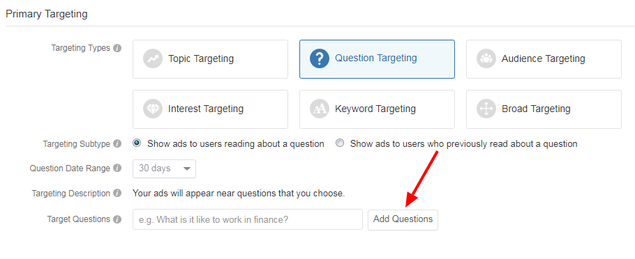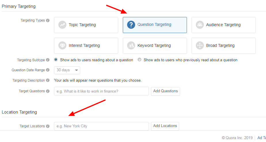 5、选择 “Question Targeting” 为定位目标,”Location Targeting” 不要选