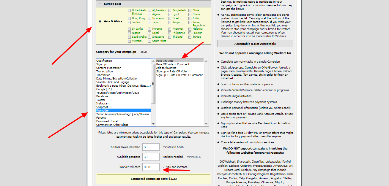 11、接着利用 microworkers 这个微任务网站,刷15个vote(不要一下子太多),亚洲流量很便宜。