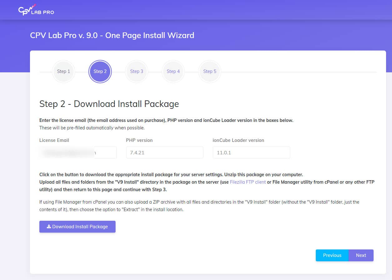 5、输入license email,下载程序正式安装包,解压后,将 V9 Install 里面的文件(不包含V9 Install本身文件夹)上传至服务器安装域名下,点击Next