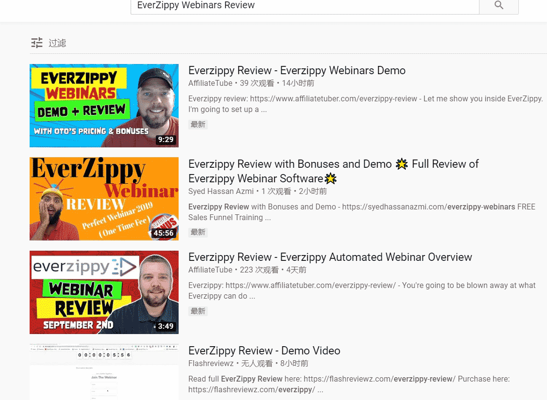 这篇文章是9月1号写的, 举个例子,EverZippy Webinars 是9月2日发售的,这哥们已经有两个视频排在 Youtube 首页了,大家可以举一反三。