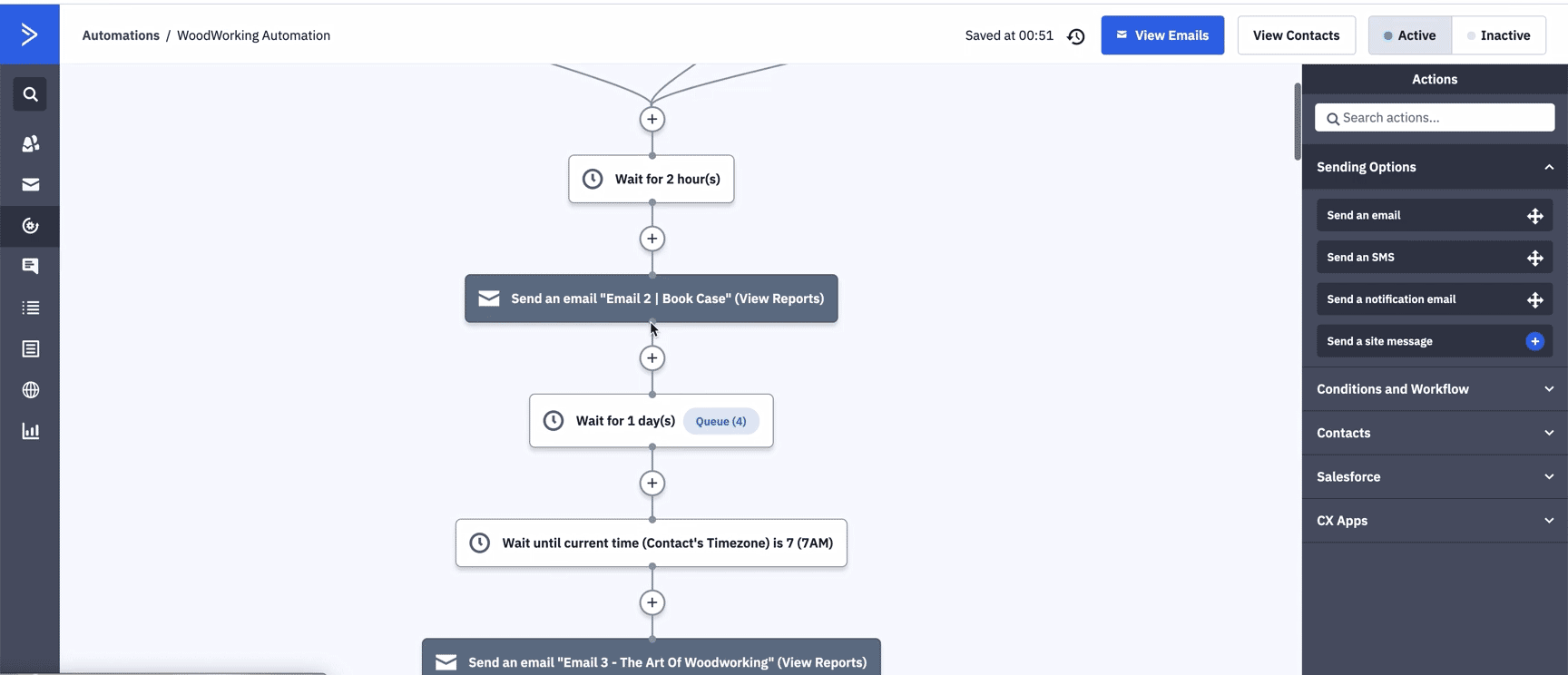 邮件服务商是 activecampaign.com,这个工具可涉及很多领域,包括电子邮件营销、营销自动化、销售CRM、消息发送等。可以打造自定义的自动化邮件。