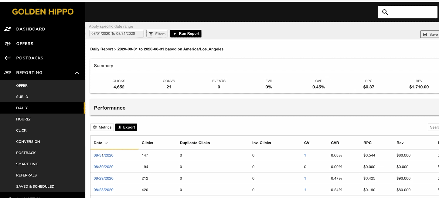 这是另外一个联盟的后台(健康类产品),一个月的收入是1710美元: