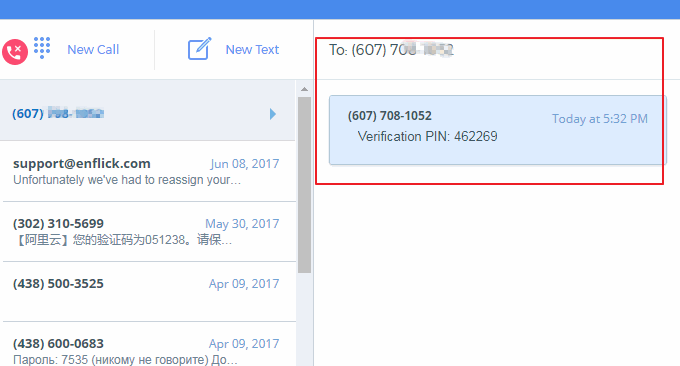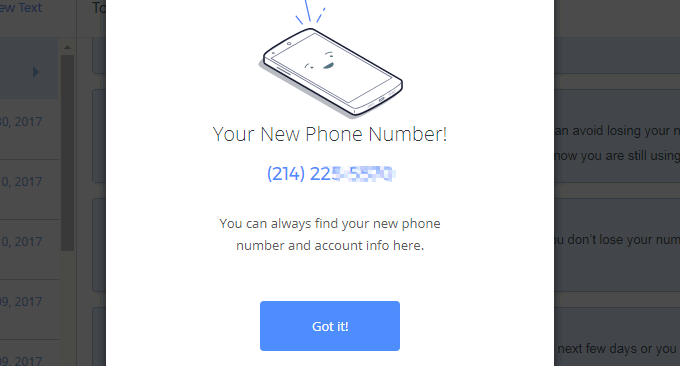接着,Text now就会分配一个免费美国电话号码给你了。