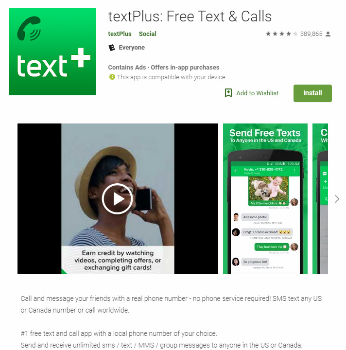 这个是一个免费的app,可以在googe play store下载和安装,可以接受美国和加拿大的短信和电话