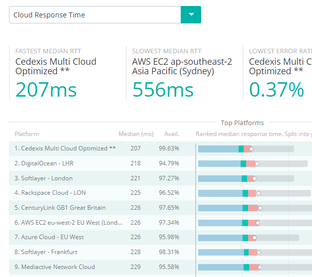 可以按照国家来排列各家cloud和cdn的性能和速度。
