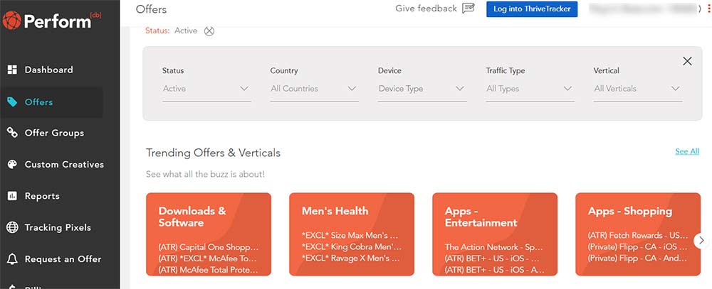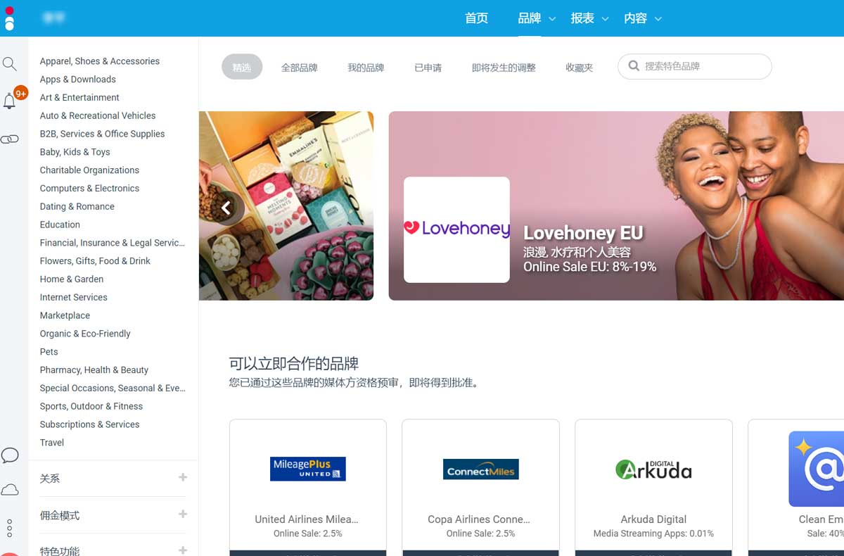 从联盟 performcb 的后台可以看到软件和app也是很热门的Vertical