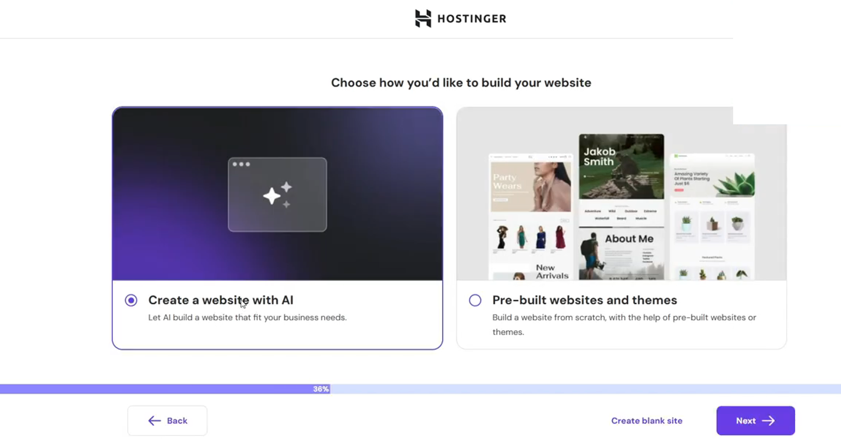 创建多个网站,当然不会手动做,现在有 AI 网站构建器。例如 Hostinger,他们有不同套餐选项,Business One 套餐可拥有多达 50 个网站。