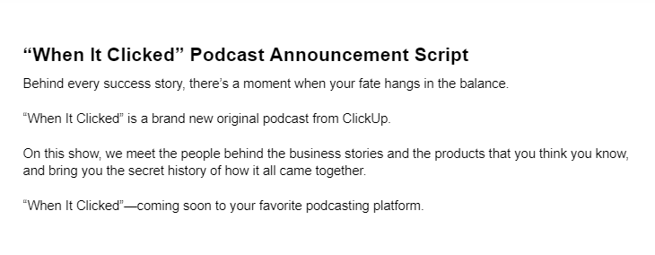 在此脚本的格式中,可以清楚地表明谁在视频的每个部分中说话以及他们在说什么。还有一些清晰的标注,指示整个视频中应该在视觉上发生什么。视频文本以粗体显示,并且当链接应出现在视频中时,会有一个注释。