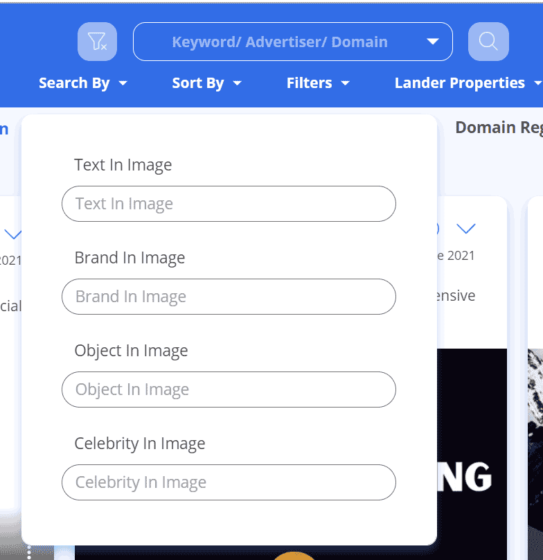 可以搜索图片中的文字,品牌中的文字来查找广告: