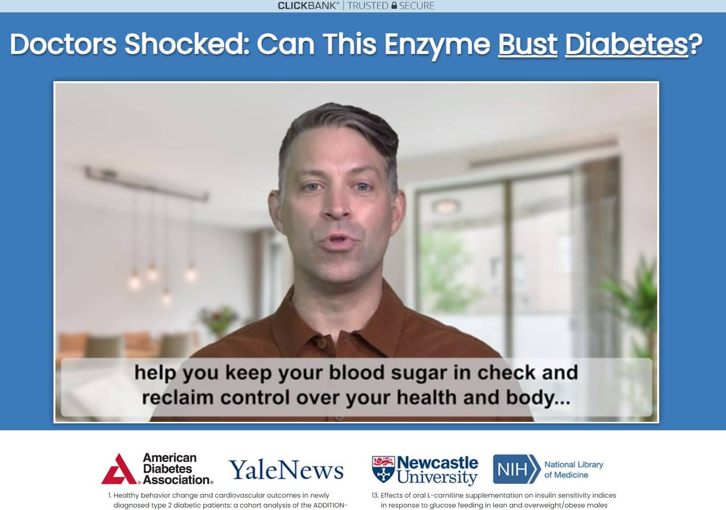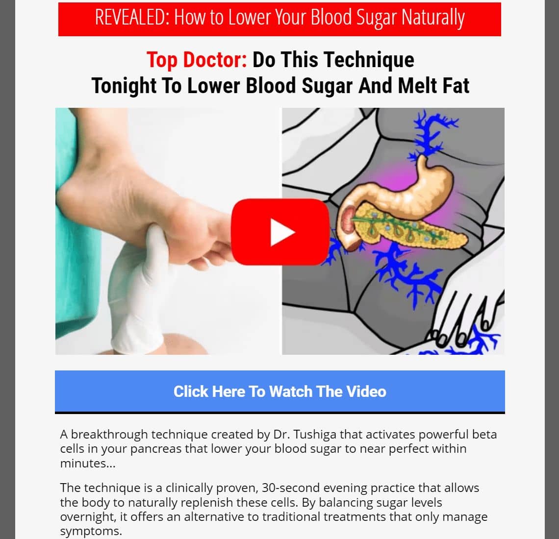 我们可以可以看到,视频描述中有一个链接,顺着打开这个链接,我们看到一个落地页面(Landing Page),这个页面可以进一步吸引访客的注意力和引起他们的兴趣,然后通过一个带有视频播放按钮的图片,将访客带到产品销售页。利用 Landing page的另外一个好处是避免Youtube的广告政策,比如这个产品是链接到clickbank产品的,有很多链接 Youtube是禁止的,放直链可能导致账号收到警告。